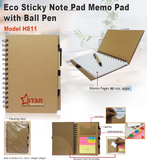 Eco Sticky Note Pad With Ball Pen 811